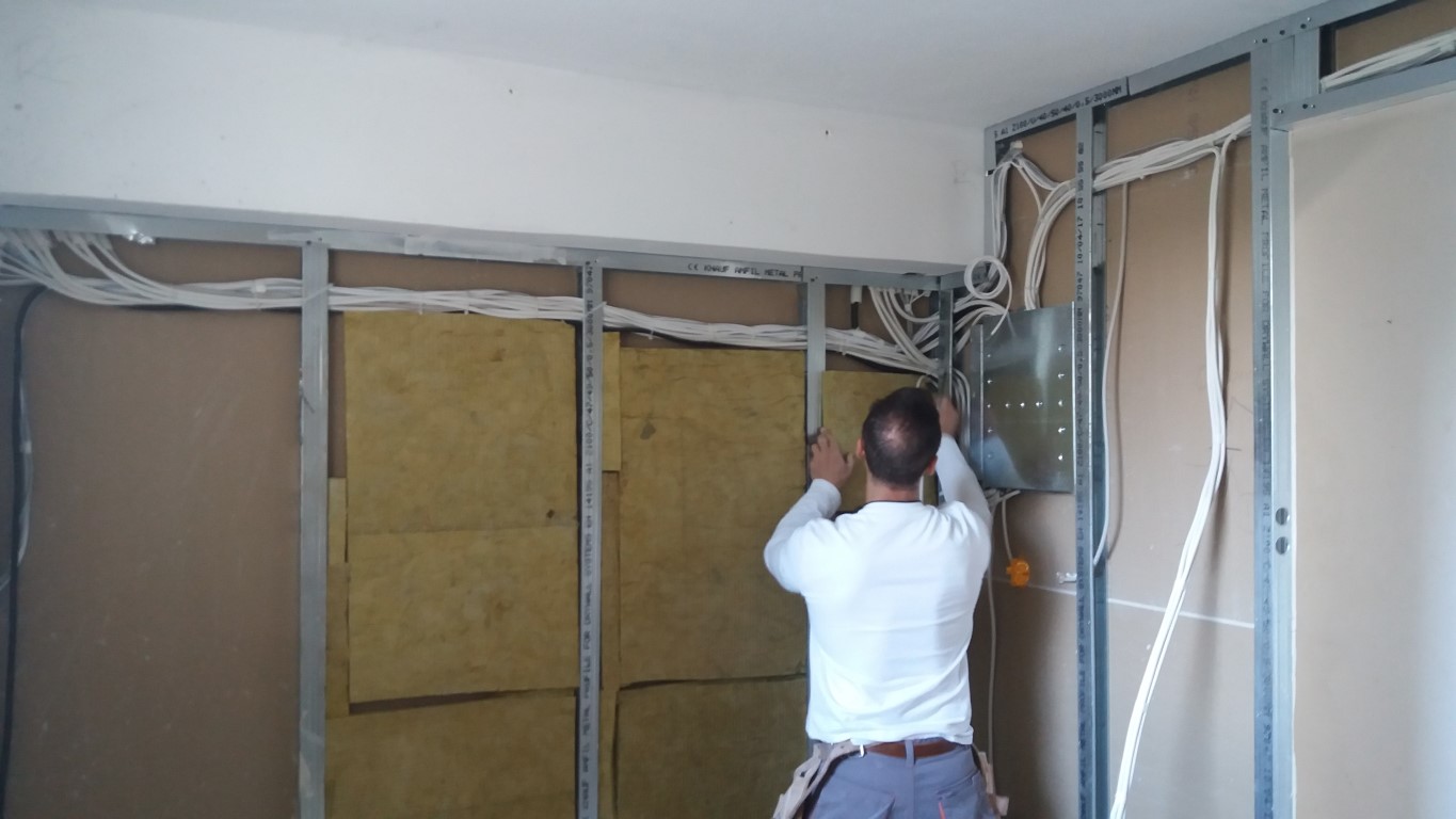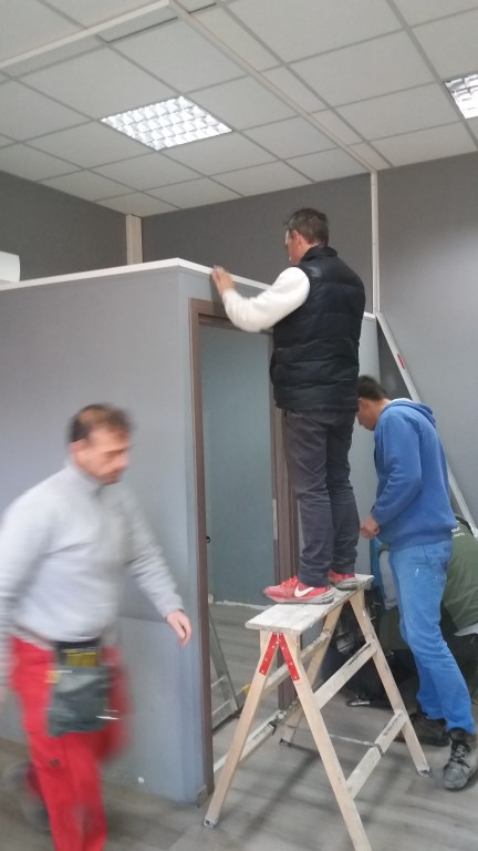 Στις παρακάτω εικόνες θα δείτε το προσωπικό της Skaravas, να εργάζεται ώστε να δημιουργήσει έναν όμορφο επαγγελματικό χώρο γραφείου. Εγκαταστάθηκε η γυψοσανίδα, βάφτηκαν οι τοίχοι των τοίχων  και εν τέλη παραδόθηκε ο χώρος στον πελάτη έτοιμος και λειτουργικός.